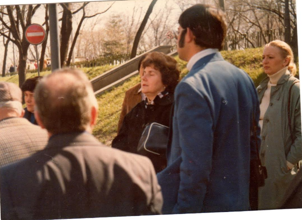 Aqui ouvindo a guia interprete (senhora de preto) na cidade de Kiev na República Socialista da Ucrânia.