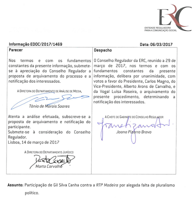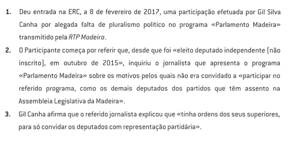 Gil Canha indignado queixou-se à ERC da discriminação que lhe é feita pela RTP/Madeira