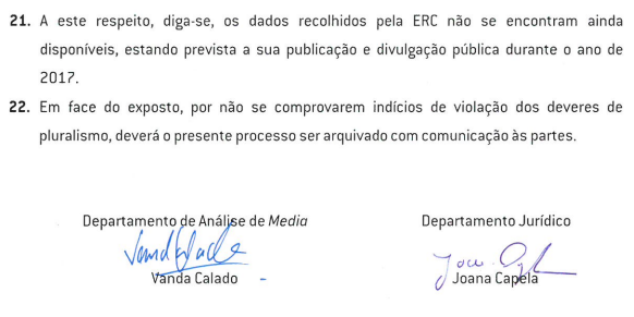 ERC não enxerga falta de pluralismo